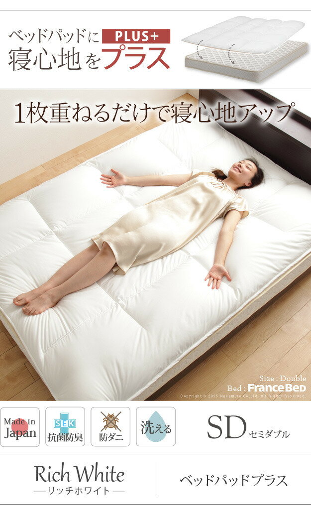 リッチホワイト寝具シリーズ ベッドパッドプラス セミダブルサイズ mu-90400024送料無料 北欧 モダン 家具 インテリア ナチュラル テイスト 新生活 オススメ おしゃれ 後払い