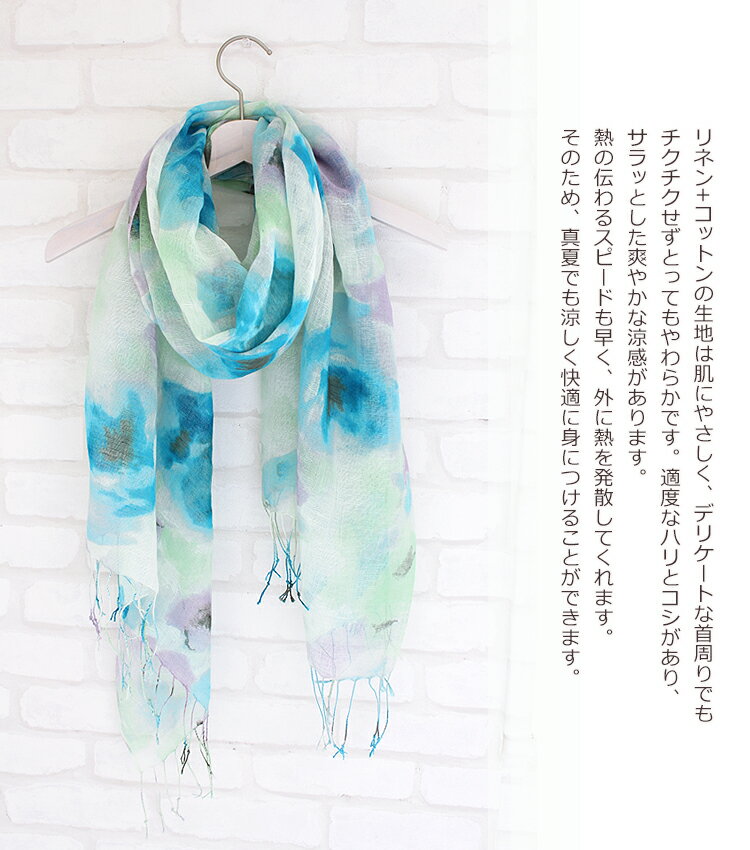 72h限定10%OFF 花柄リネンストール マスク素材 ☆02 麻 亜麻 リネン 大判 ストール レディース フラワー 軽い 花見 母 彼女 平 ミントグリーン 青 ブルー パープル ボタニカル uvカット 春 春夏 秋 秋冬 防寒 UV 紫外線 父の日 ギフト プレゼント stall stole 父の日