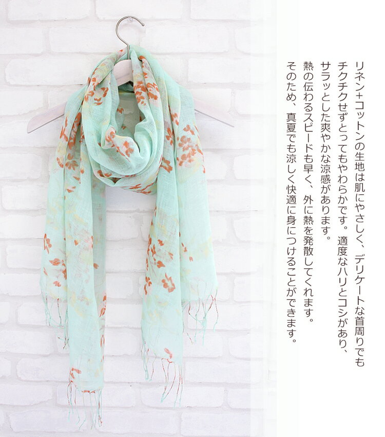 72h限定10%OFF 花柄リネンストール マスク素材 ☆02 麻 亜麻 リネン 大判 ストール レディース フラワー 軽い 花見 母 彼女 平 ミント グリーン ブルー オレンジ ボタニカル uvカット 春 春夏 秋 秋冬 防寒 UV 紫外線 父の日 ギフト プレゼント stall stole 父の日