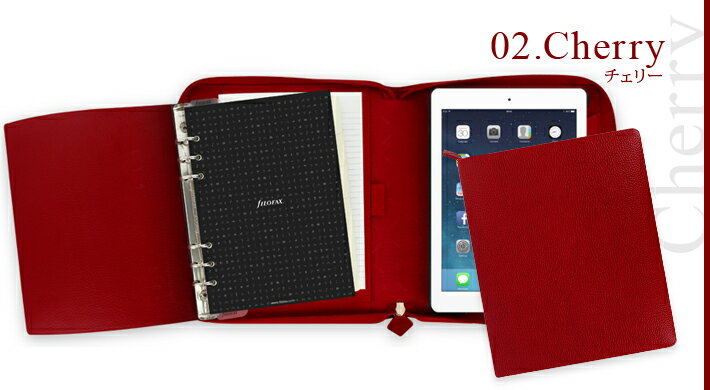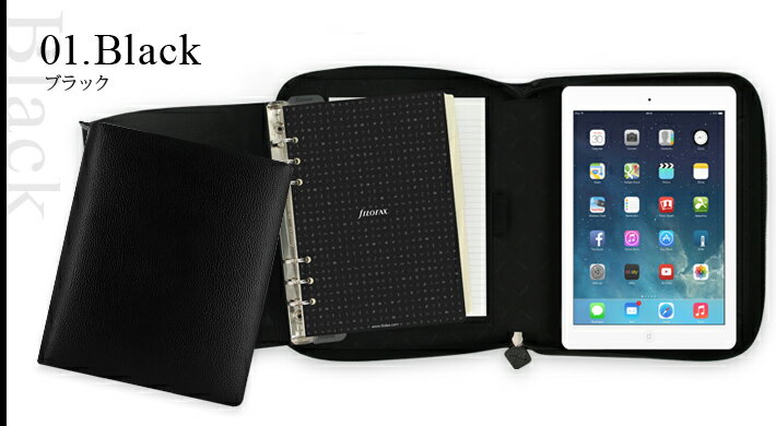 【カラー】BLACK 【サイズ】A5サイズ 【素材】 表地:手仕上げ加工のテクスチャードレザー 裏地:表地レザーと同系色のライン 【実寸】横:225mm 長さ:265mm 厚み:50mm リング内径20mm 【仕様】 見開き左:カードポケット、スマートフォンポケット、メモ帳ポケット、取り外し可能な構造 見開き右:360度回転可能なiPad Air 2ホルダー 手帳タイプ:1週間1ページダイアリー(多言語対応) 閉口部分:ジッパータイプ 右、左、両利き用フィンスバリー Finsbury A5 iPad Air 2 ケース Black ファイロファックス filofax システム手帳 ノートパッドホルダー 一体型 iPadケース 多機能ホルダー カラー BLACK、CHERRY、RASPBERRY サイズ A5サイズ 素材 表地:手仕上げ加工のテクスチャードレザー 裏地:表地レザーと同系色のライン 実寸 横:225mm 長さ:265mm 厚み:50mm リング内径20mm 仕様 見開き左:カードポケット、スマートフォンポケット、メモ帳ポケット、取り外し可能な構造 見開き右:360度回転可能なiPad Air 2ホルダー 手帳タイプ:1週間1ページダイアリー(多言語対応) 閉口部分:ジッパータイプ 右、左、両利き用 商品説明 手仕上げのレザーで作られたこちらのFinsbury iPad Air 2システム手帳はiPad Air 2を安全に収納することができます。